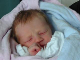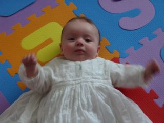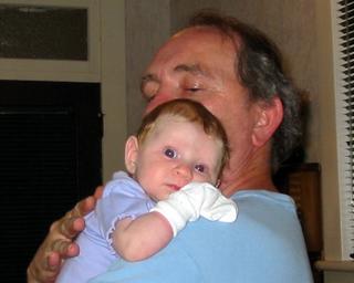 Every once in awhile Grandad gets to hold April. Right here I think she is wondering why she has socks on her hands.